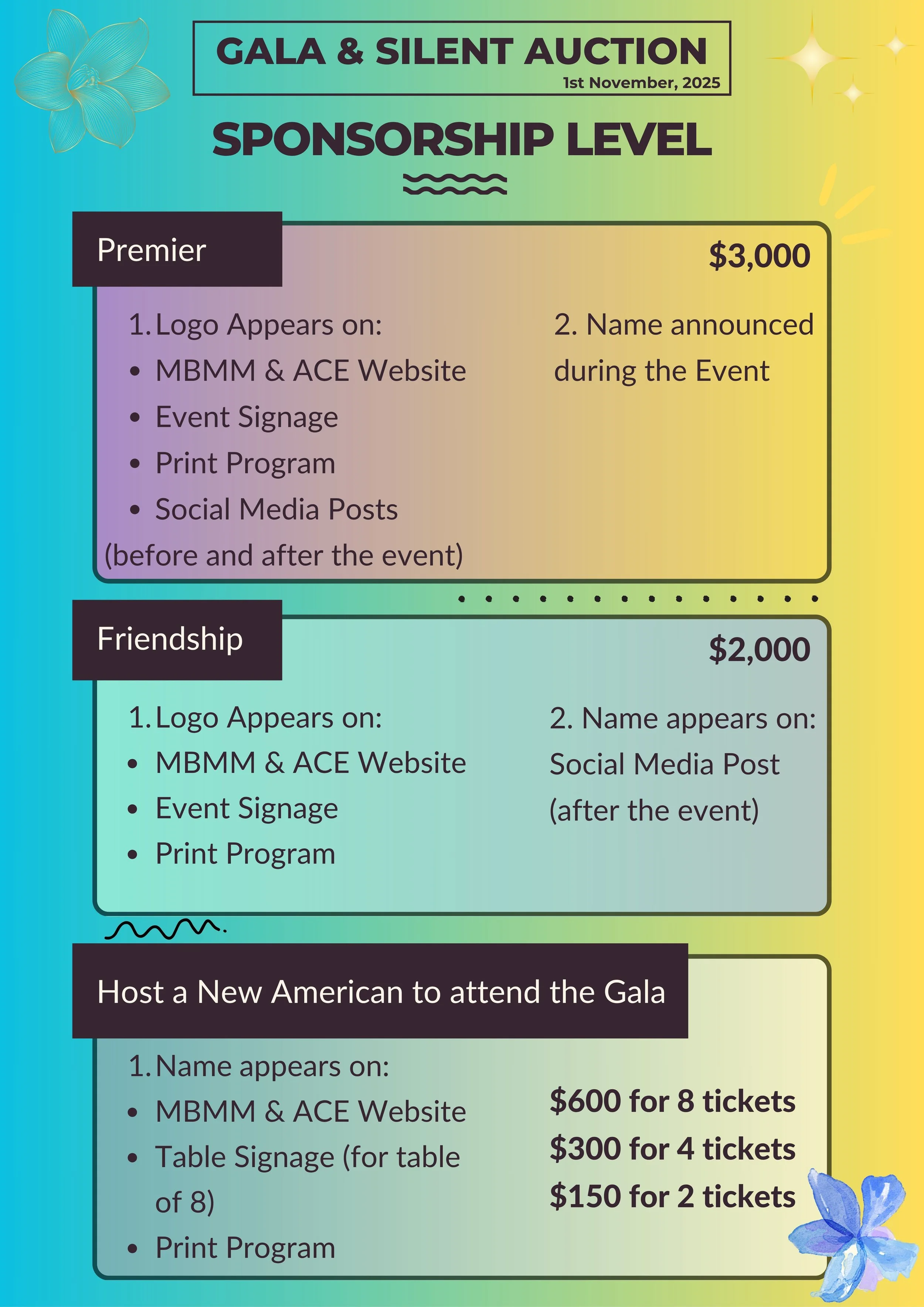 Join us for an evening of food, music, and celebration as we raise funds to support the ACE Center for New Americans programs. The event will feature a diverse dinner menu, live entertainment, and an exciting community auction. It’s a wonderful opportunity to gather with friends and supporters who share our mission of welcoming and empowering New Americans.